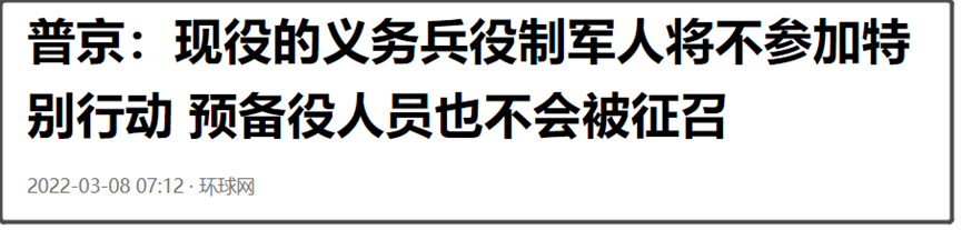此外,俄罗斯国防部长也仍然表示,义务兵不会派遣至前线。