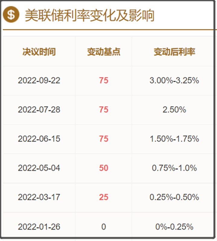 在美联储这次加息75基点后,美国利率已经达到3%~3.25%的区间,这也是美国今年连续第3次加息75基点。