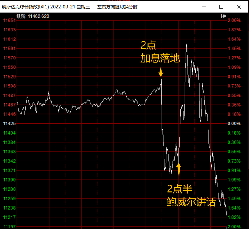 今天鲍威尔在加息后的讲话,可以说是,先安抚一下市场,然后又恐吓了下市场,结果就把美股搞得上蹿下跳,跟个猴市一样。