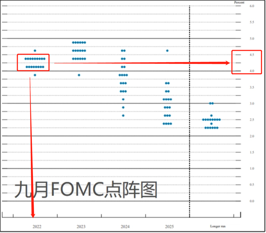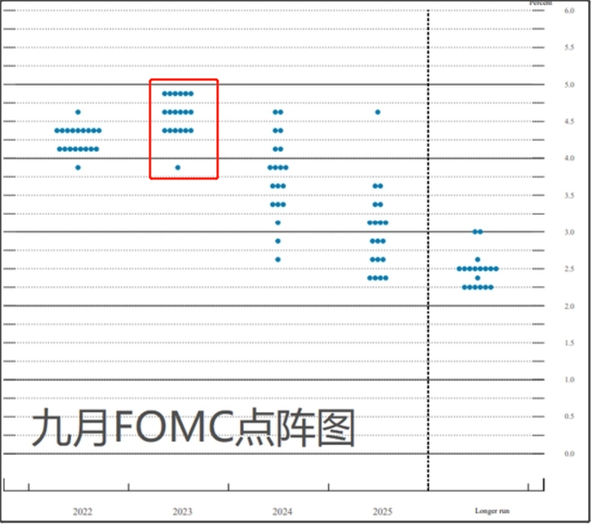 所以,美联储点阵图对明年的利率预期中值是4.5%~4.75%。