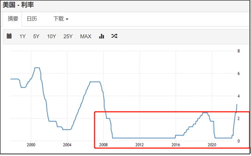 要知道,2008年之后,美联储利率就没有高过2.5%。