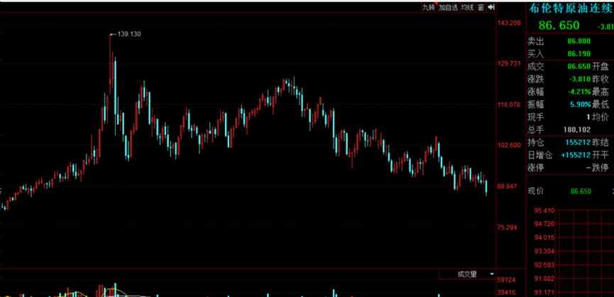 国际原油价格最近也是跌跌不休,布伦特原油跌破87美元,美国原油跌破80美元。
