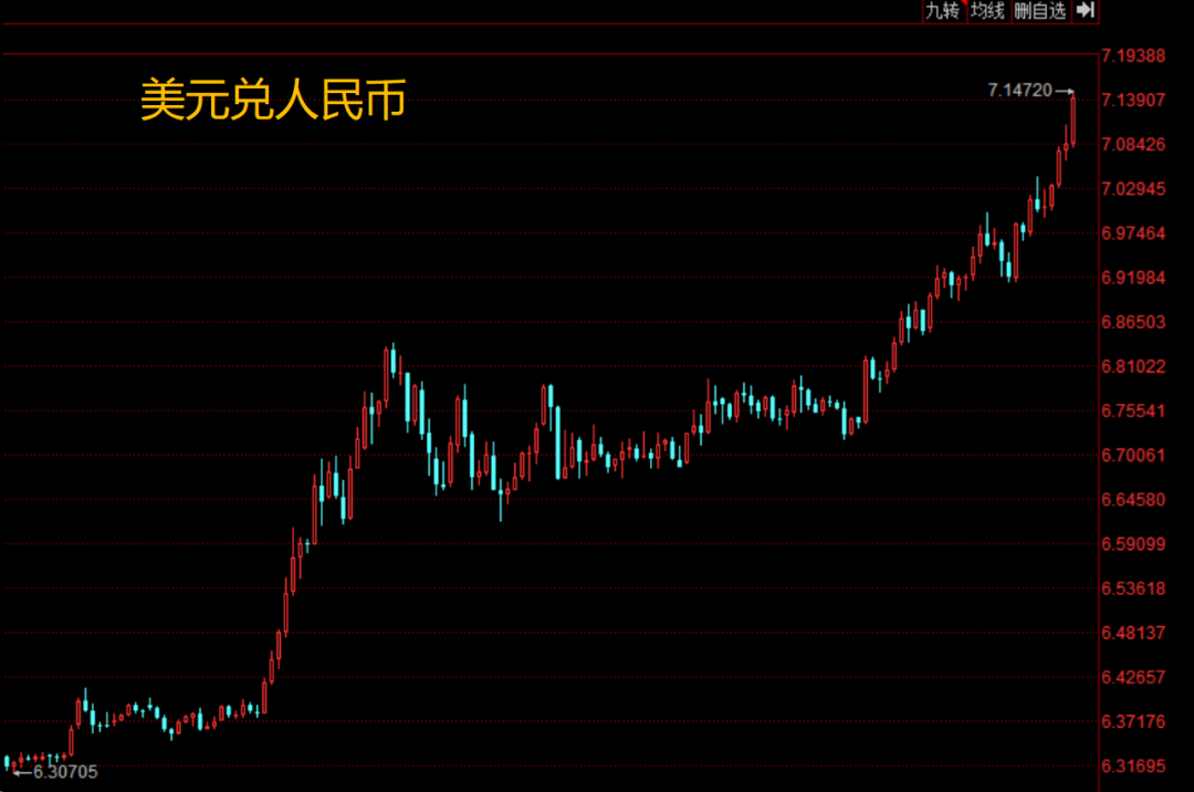 人民币汇率在昨天晚上已经一度贬值到7.14。