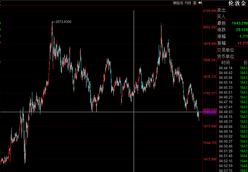 国际金价在3月突破2000美元的时候,我当时也有些文章提醒大家要注意获利了结,也认为在美联储加息周期里,黄金不是一个太好的投资标的,至少也得等到1700美元下方,才可以考虑黄金。