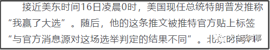 结果这个推一发出来,马上就被推特贴上了标签“与官方消息源对这场选举判定的结果不同”。