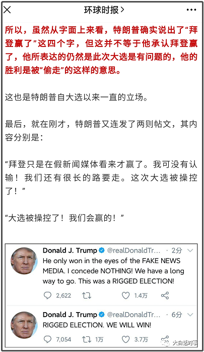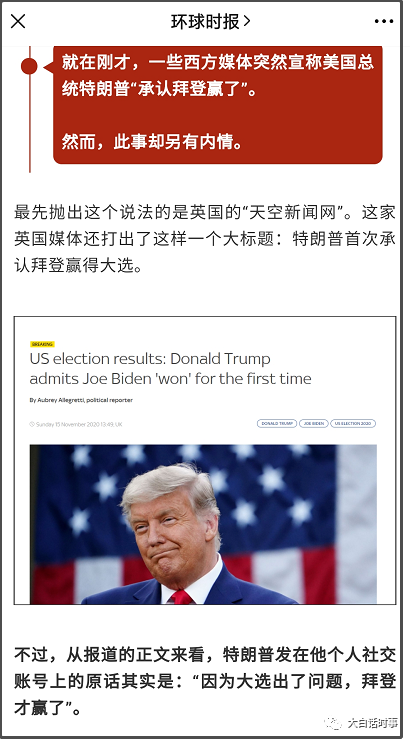 比如说,昨晚各大美国媒体都信誓旦旦的报道说“特朗普承认拜登赢了”。