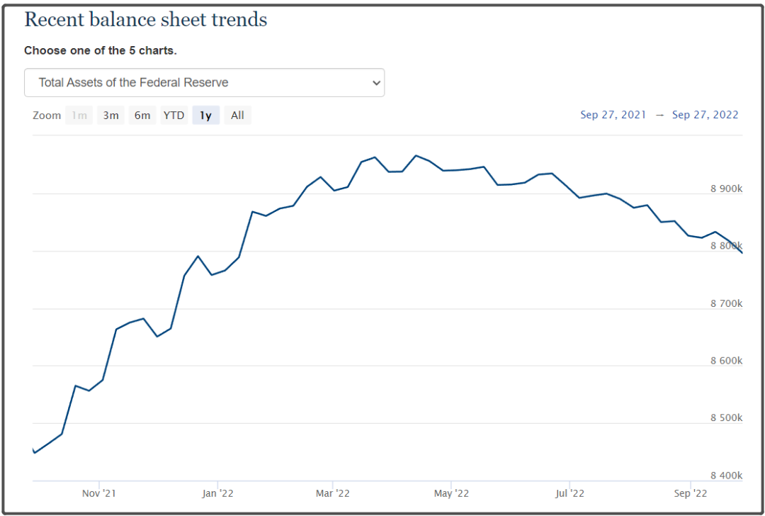 其实就在9月22日,英国在宣布加息50基点,把利率提高到2.25%的同时,还宣布了从10月3日开始主动缩表的计划。