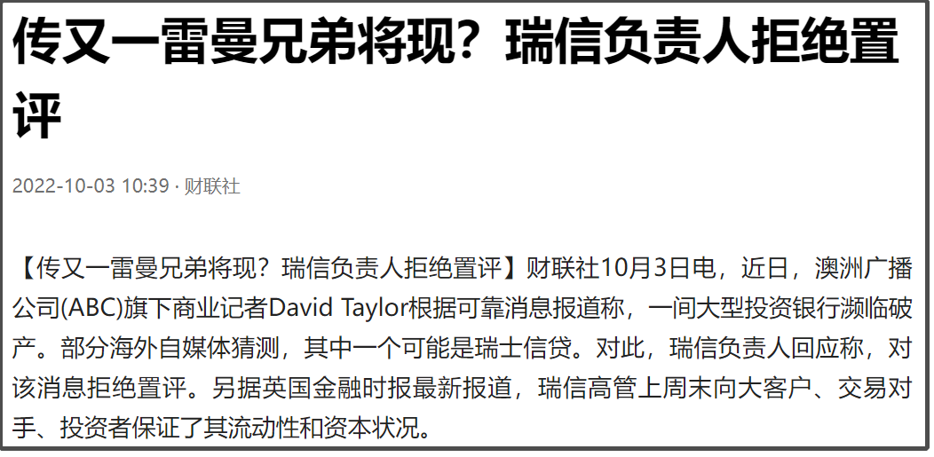 面对外界的种种破产传闻,瑞信自然要出来安抚投资者。