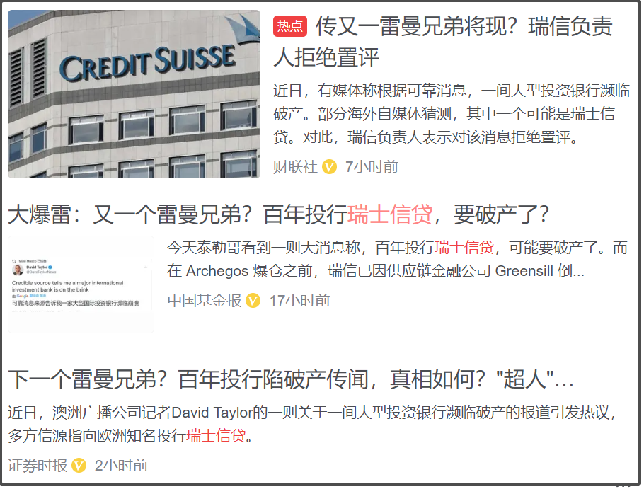 最近一直深陷负面新闻的瑞士信贷,再度陷入破产传闻。
