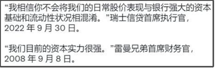 但很尴尬的是,很快国外网友就扒出,2008年雷曼兄弟破产前也曾经说过类似的话。