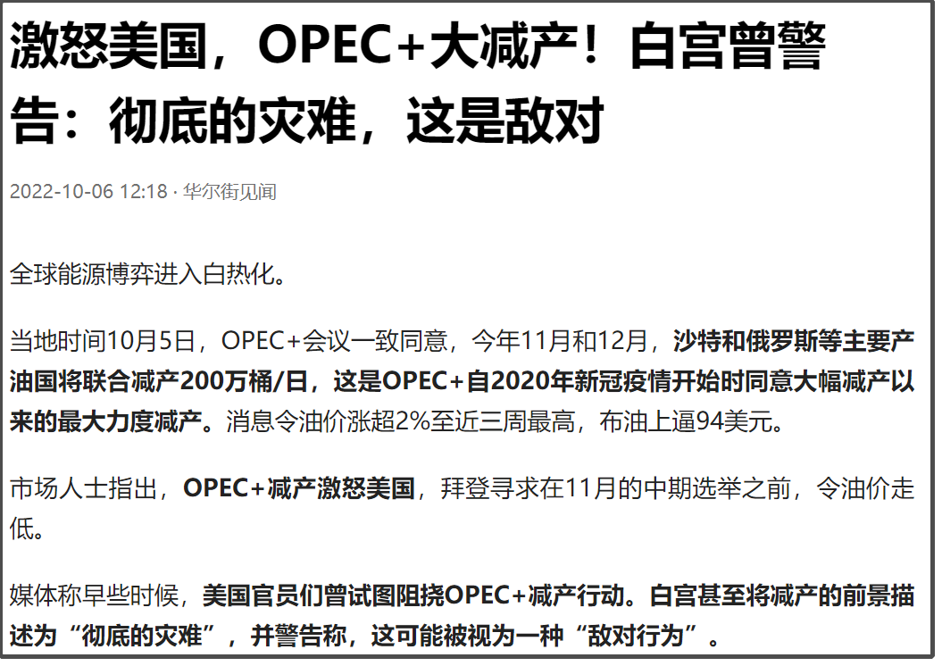 只不过,欧佩克+这样做也确实很不给拜登面子。