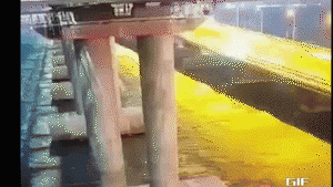 今天,克里米亚大桥发生爆炸,有一列油罐列车在桥上着火,而旁边的公路段发生了坍塌。