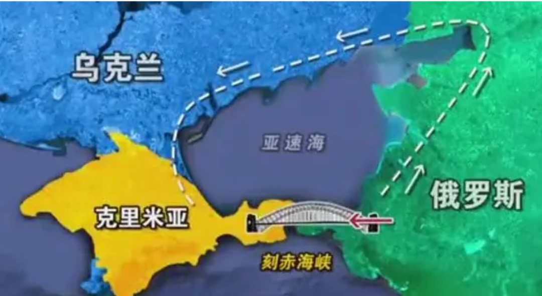 但克里米亚半岛的东部,跟俄罗斯本土有一个刻赤海峡相隔。