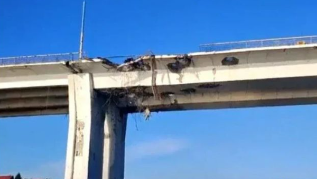 大桥陆地部分上方的拱门未受损。