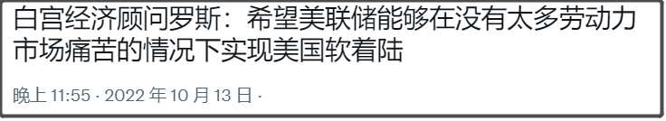 白宫经济顾问称,希望美联储能够在,不给劳动力市场带来太多痛苦的情况下,实现美国软着陆。