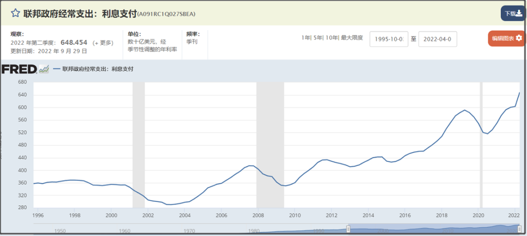 之前提到过,美联储加息,并不会立即让美国政府要缴纳的利息有大幅度增加。