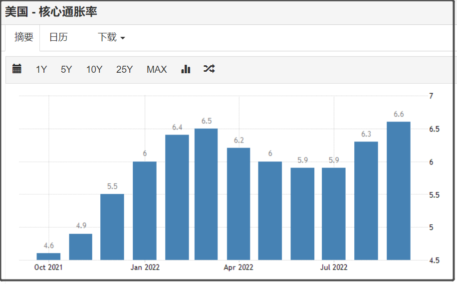 美国9月核心通胀率是6.6%,预期值6.5%,比上个月6.3%,仍然是上涨。