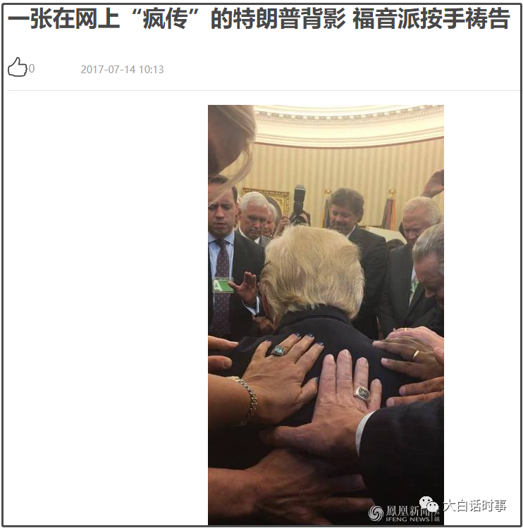 这个视频是特朗普的福音派顾问之前在特朗普选情不利的时候,用这样匪夷所思的方式给特朗普“加油鼓劲”,让我比较担忧的是,我们国内大多数人看这个视频,是当笑话看的。
