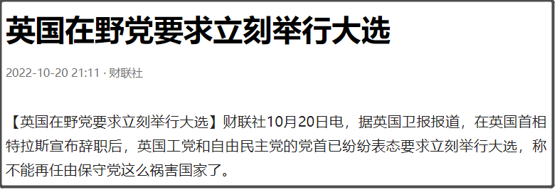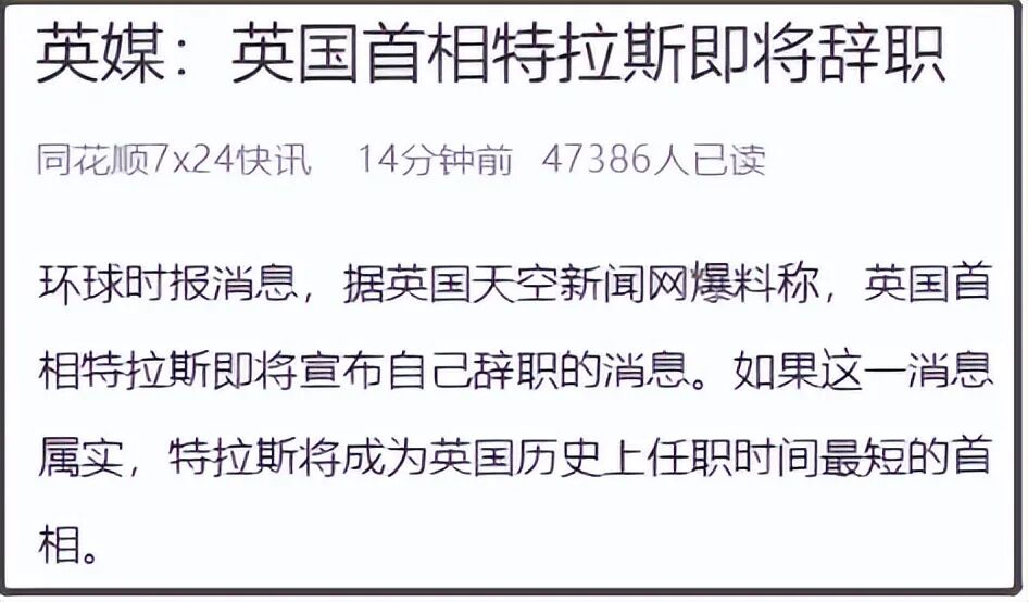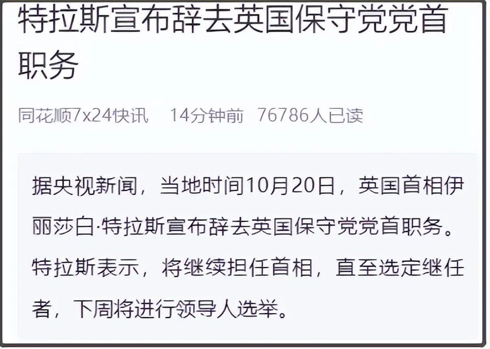 结果没想到,弹窗出来一个新闻说,特拉斯宣布正式辞职。