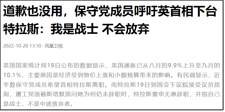 不过可能特拉斯觉得被罢免太难看,还是干脆自己宣布辞职,还体面一些。