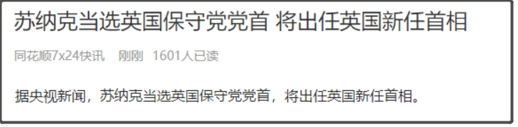 我文章写到这里的时候,时间也到了晚上9点05分,正式的新闻也出来了,苏纳克赢了。