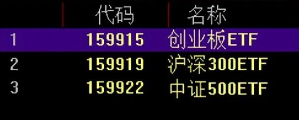 深交所标的,3个宽基指数基金都是1开头的,分别是创业板ETF、沪深300ETF、中证500ETF。