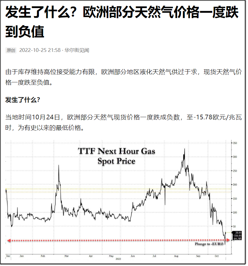 10月24日,欧洲部分天然气现货价格一度跌成负数。