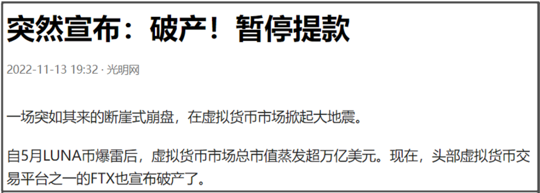 最近头部虚拟货币交易所FTX爆了个大雷,已经宣布破产了。