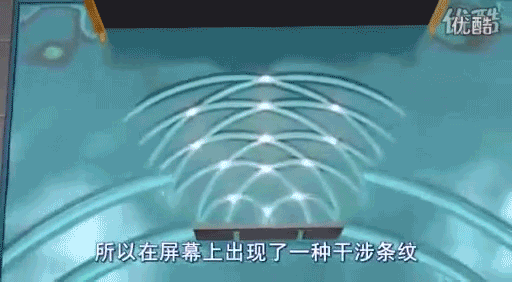 这两道波的波峰和波峰叠加的地方就会在屏幕上留下亮条纹,而波峰和波谷叠加的地方因为互相抵消,就会在屏幕上留下暗条纹。