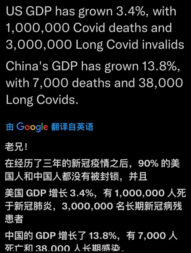 2、从整体层面:要认识到,一旦躺平放开,即使千分之一的死亡率,以我们的人口基数也会造成上百万人死亡。
