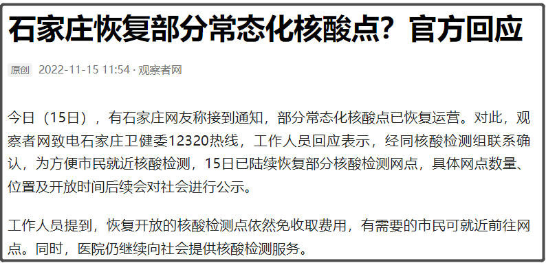 今天已经有后续,有新闻报道某地方恢复了部分常态化核酸检测网点。