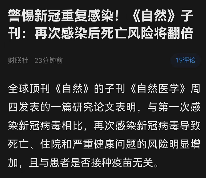 而重复感染之后,就会提高感染者的死亡风险,还有患肺、心脏、肾脏、心理健康、神经系统疾病的风险也会因为重复感染而增加。
