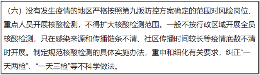 1、没有发生的疫情的地区,不得扩大核酸检测范围。