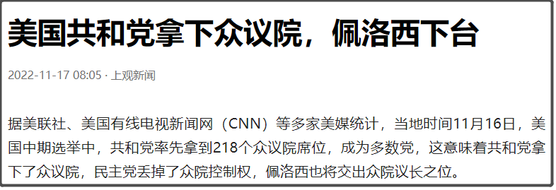 而现在,共和党和民主党各拿下一院,那么明年我们和美国爆发一些地区冲突的可能性,就降低了不少。
