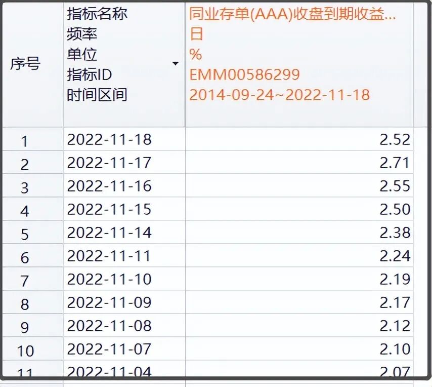 而从11月4日开始,1年期同业存单到期收益率就快速飙涨,从2.07%,涨到了11月17日的2.71%,涨幅有30%。