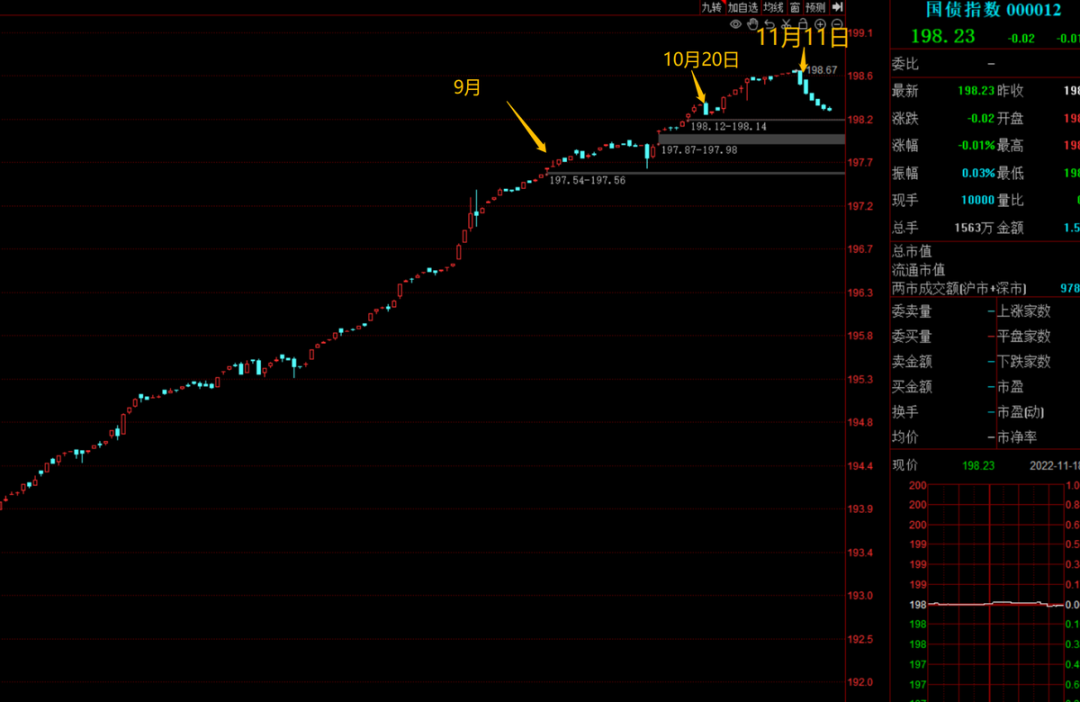 从上图可以看到,在11月11日开始,国债指数就出现一波下跌。