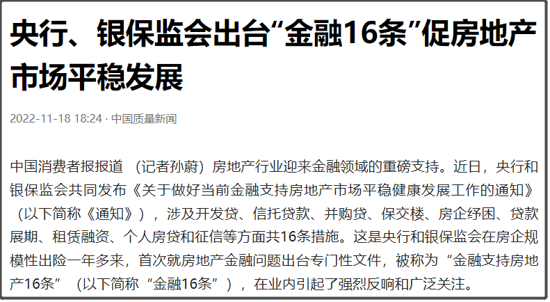 房地产仍然还是处于寒冬,只是我们为了确保房地产市场整体不出现严重问题,特别是要避免烂尾楼出现,才有了这次“16条”。