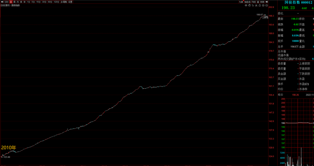 这是因为国债指数基本就是整个国债市场的一个收益体现。