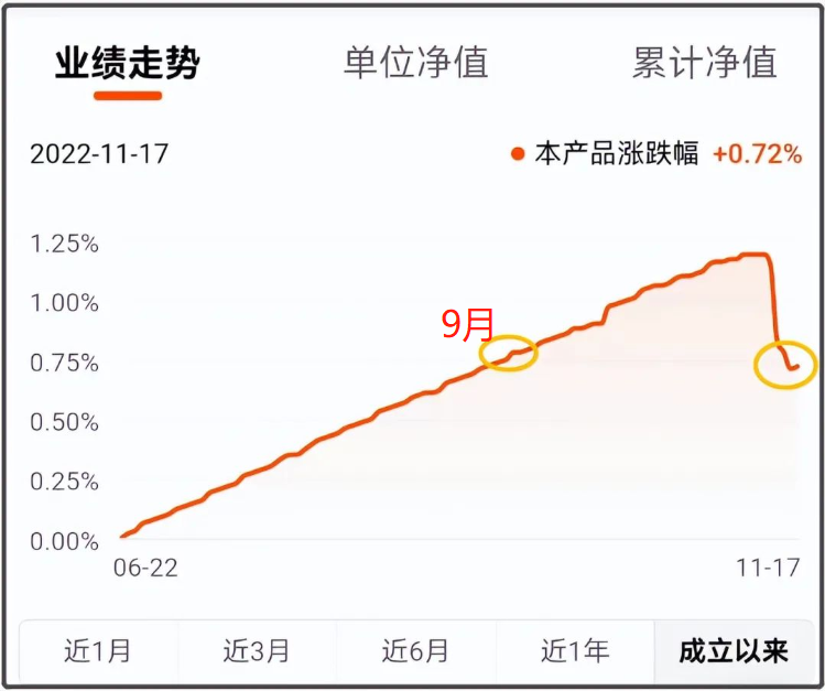 我随便翻一支R2级理财,可以看到,11月14日这天,基本是把过去两个月的收益给跌没了。