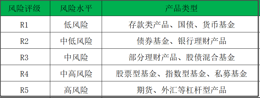 R1是低风险,主要是存款类产品、国债、货币基金等等。