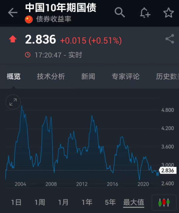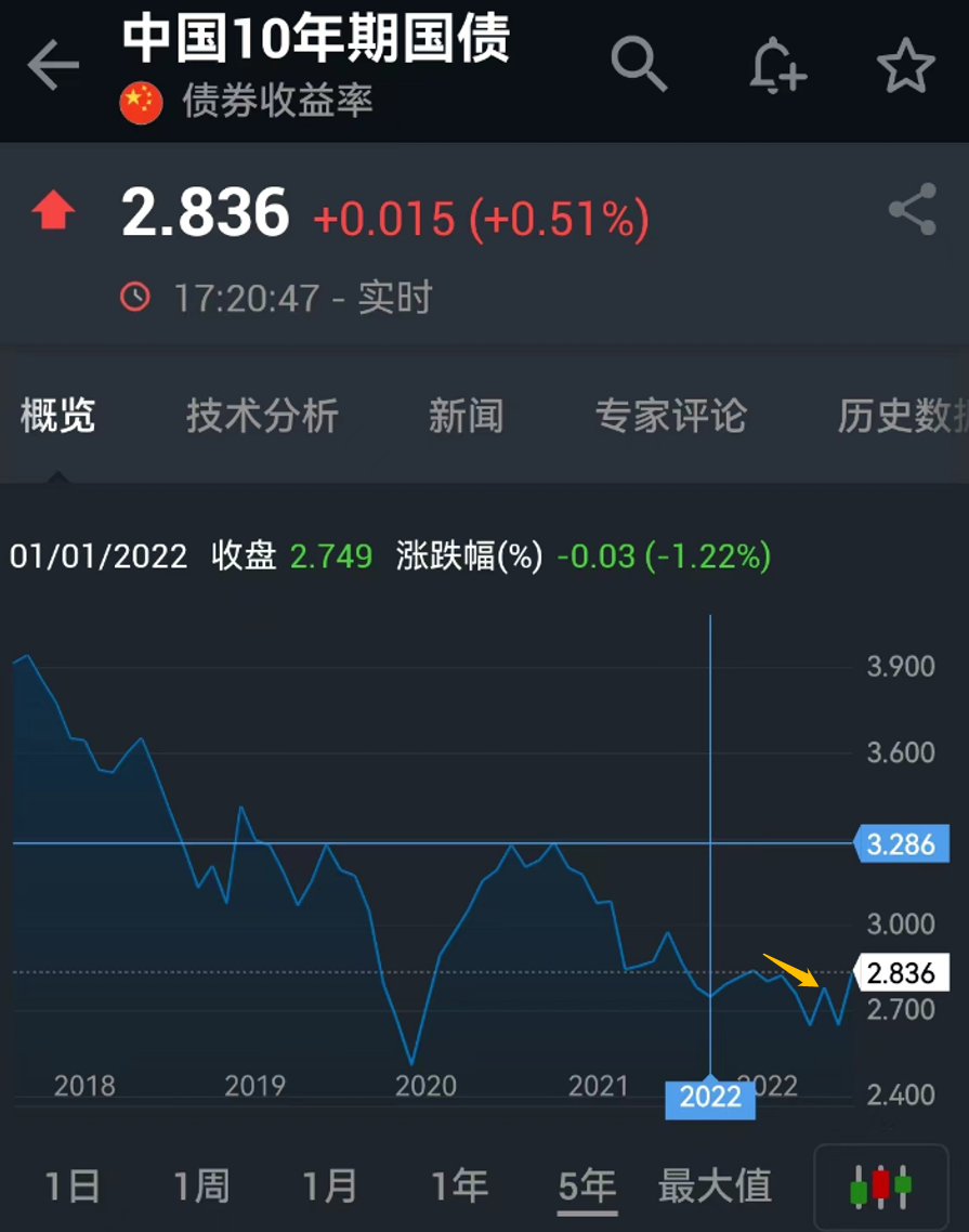 前4天,国债收益率一路回落到2.8%,但今天就涨回2.84%。