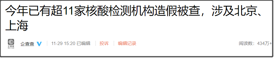 有报道统计称,今年已有超11家核酸检测机构造假被查。