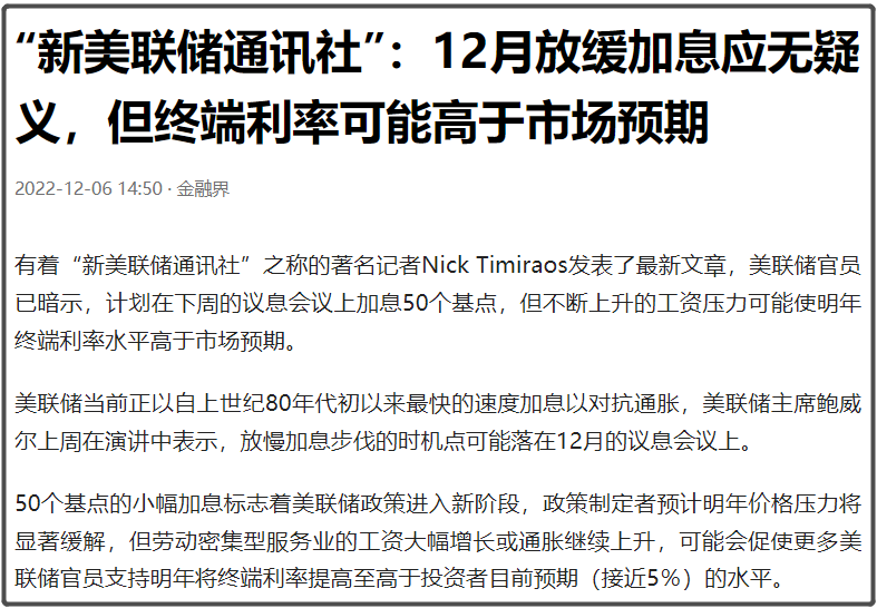 现在美联储可能觉得只要加息到5%,就能达到目标,所以就释放一些鸽派信息。