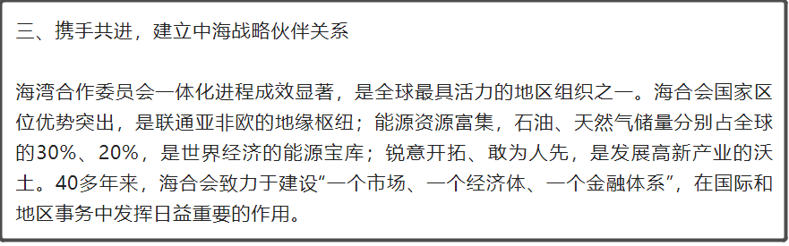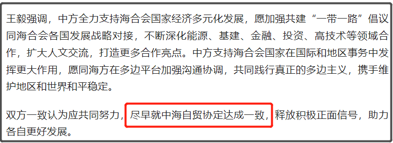 所以,我们和海合会的“中海自贸协定”,即使这次没签,那也只是时间早晚的问题。