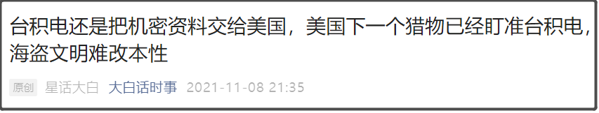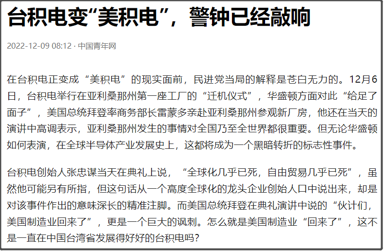 另外台积电现在摆明是要搬去美国,过去半年却一直打着“扩产”的旗号,包括台湾省也一直跟岛内民众安慰说,不是要把台积电搬去美国。