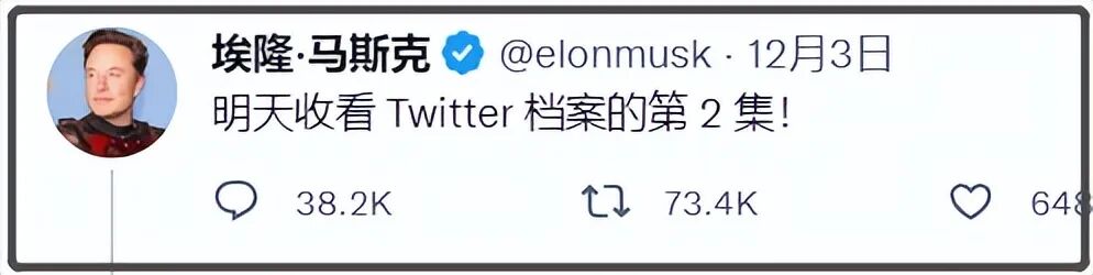 本来马斯克是在12月3日爆料后,就预告4日就要继续爆料“第2集”。