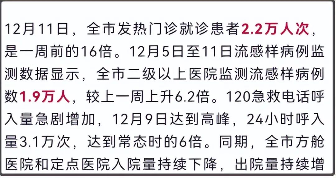 12月11日,单单这一天,北京全市发热门诊就诊患者2.2万人次,是一周前的16倍。
