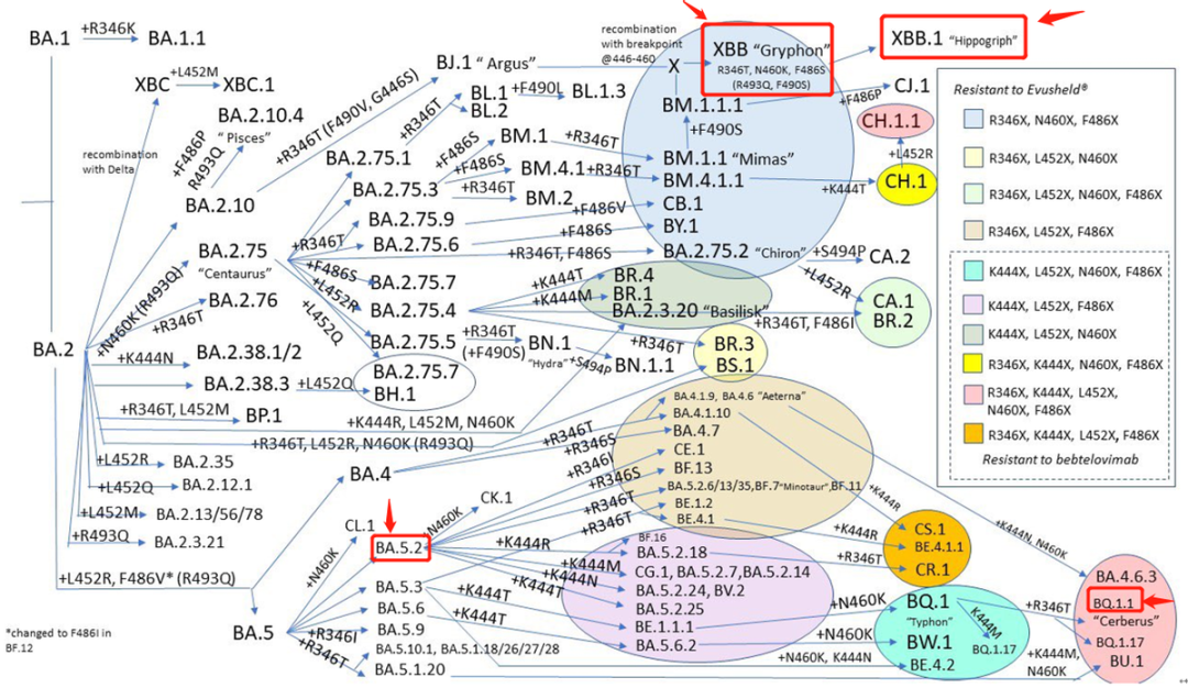 现在普遍是流行XBB和BQ1.1这两大系列的子孙毒株。