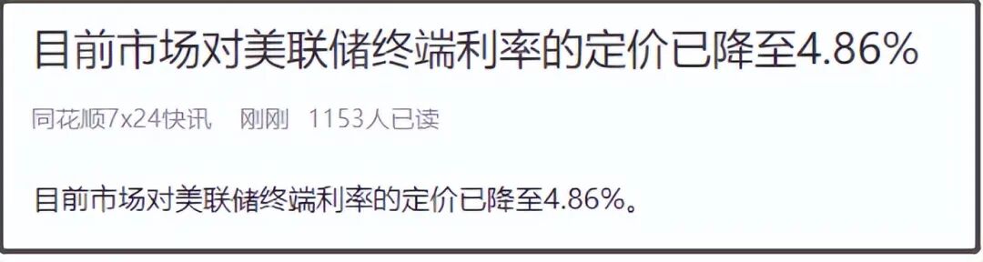 不过晚上美国通胀数据超预期回落后,市场对明年终端利率的预期值又降回4.86%。