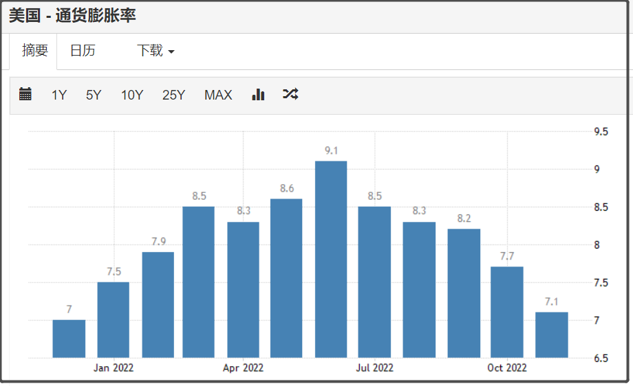 美国明年加息的终端利率,也得看美国明年通胀的回落情况。